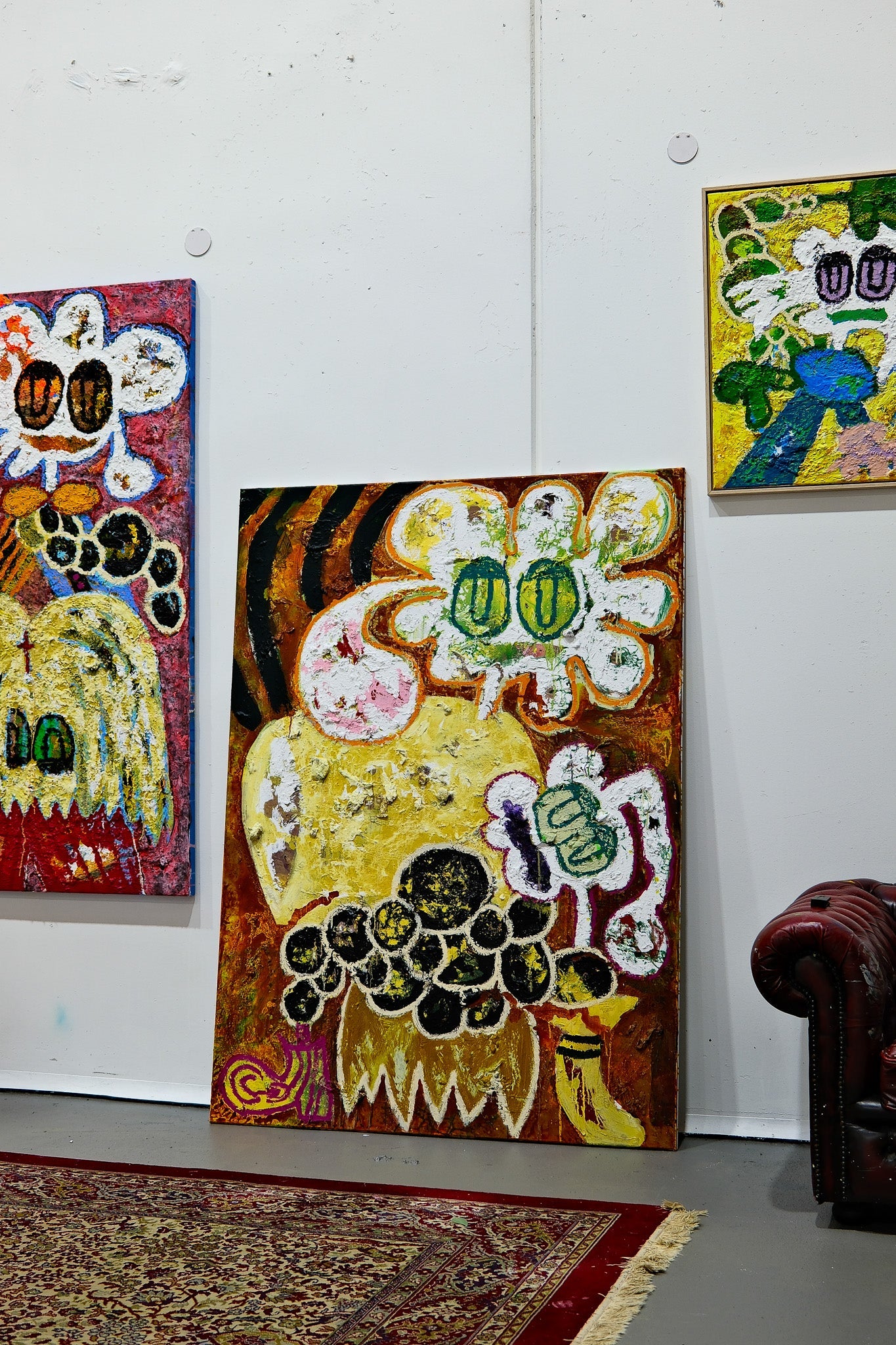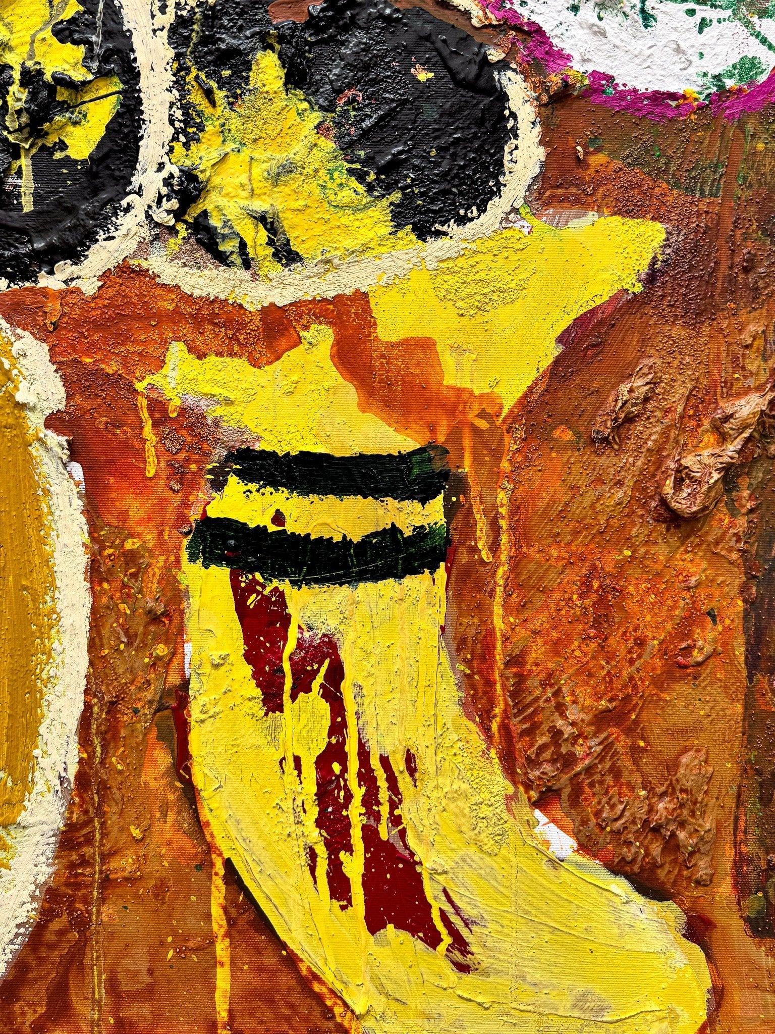 acrylic, oilsticks, spraypaint, sand and water on canvas