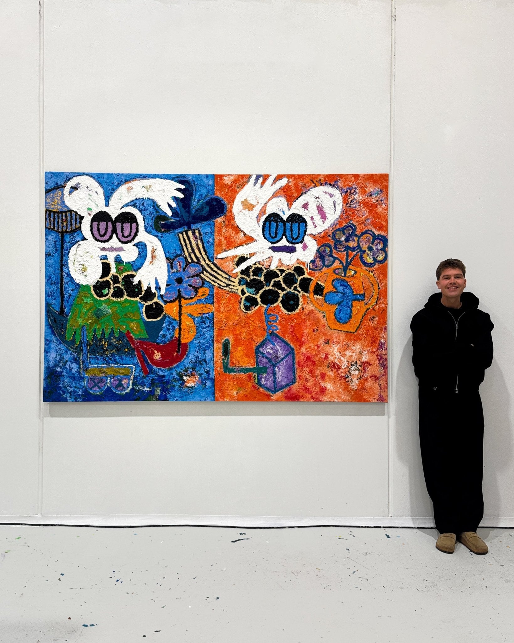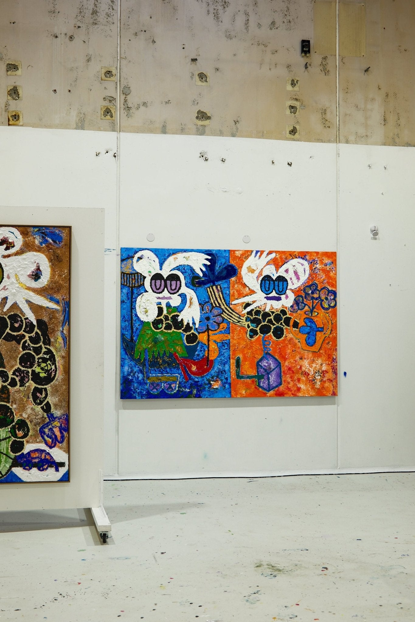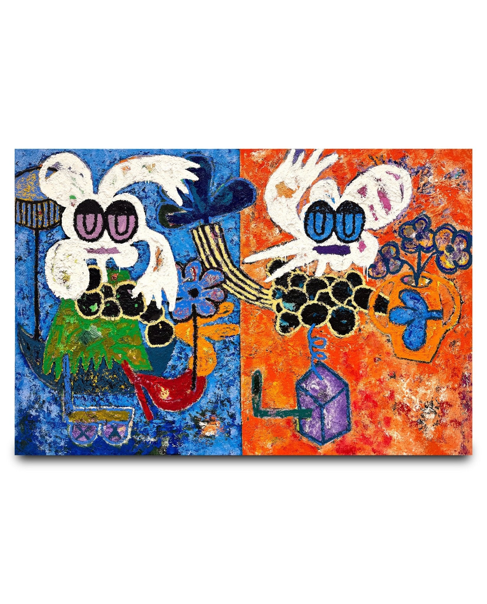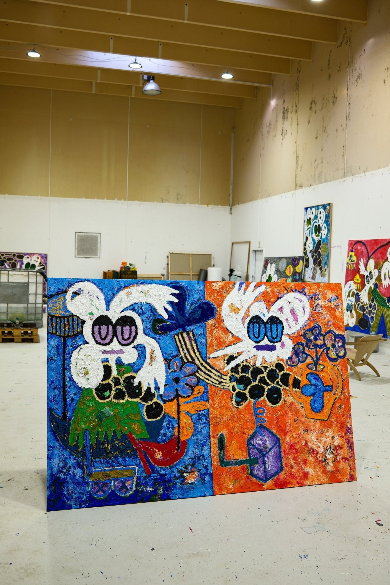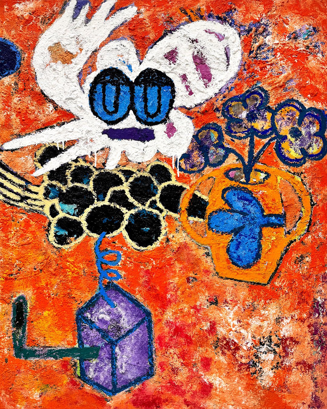 acrylic, oilsticks, spraypaint, sand and paper on canvas