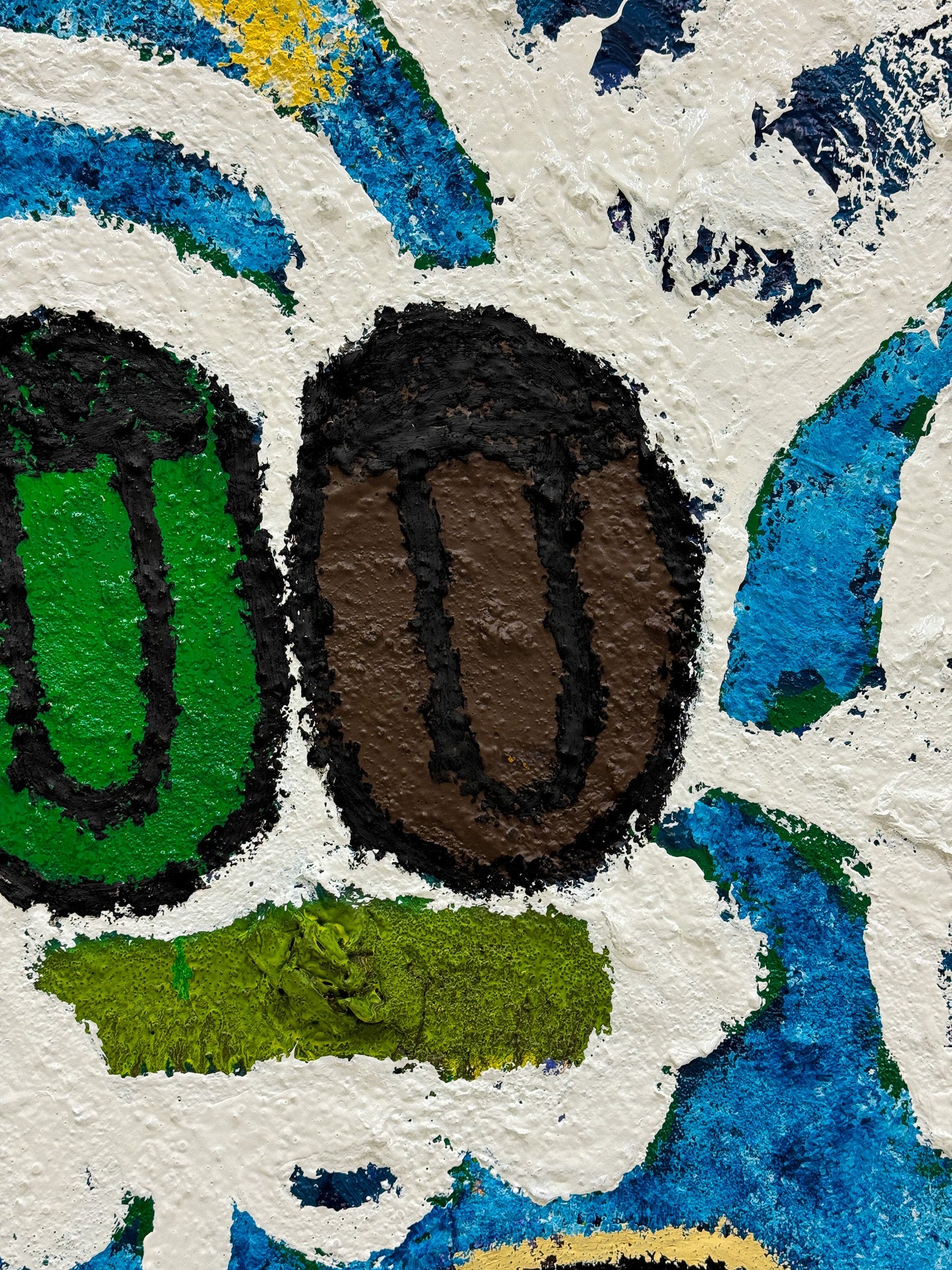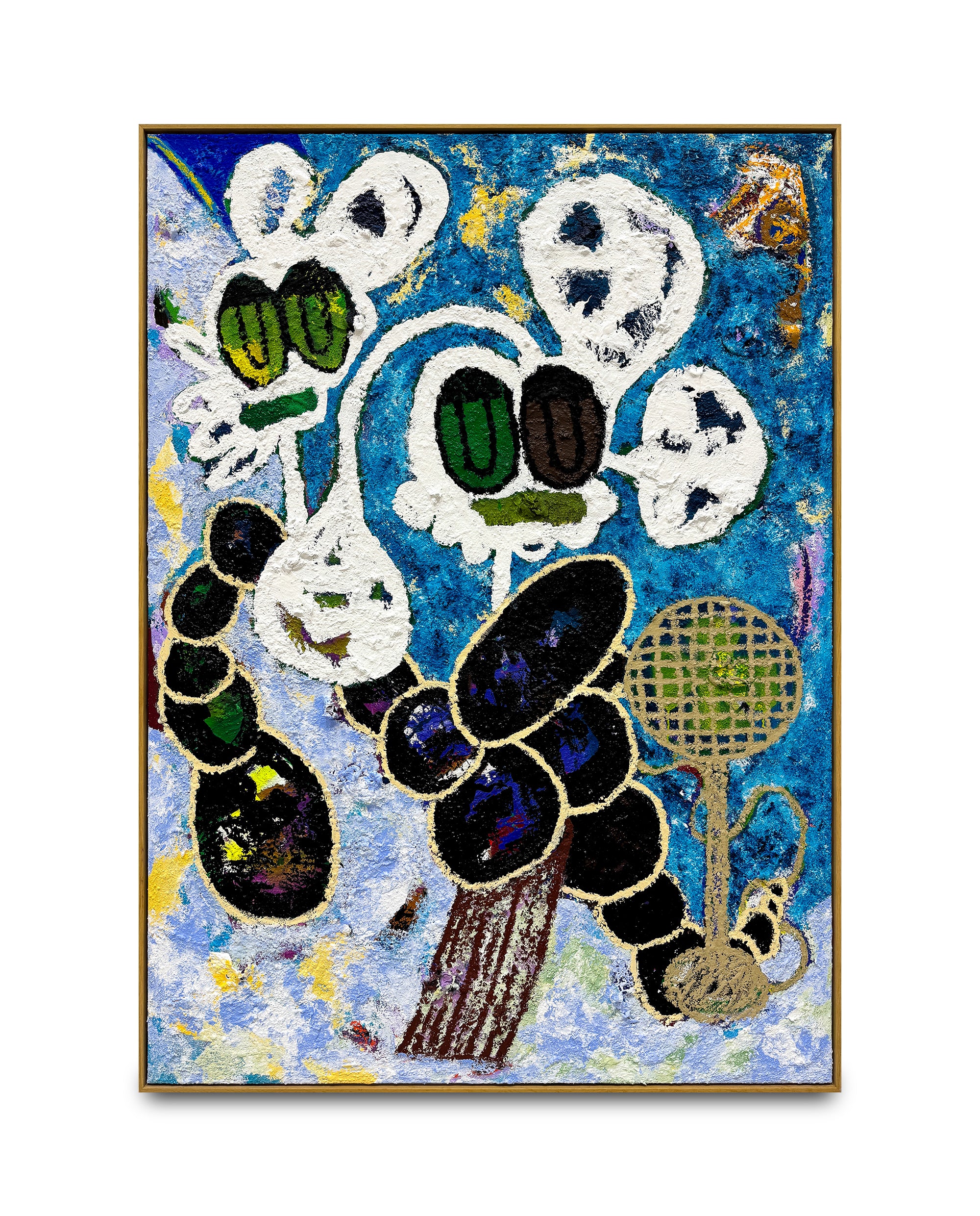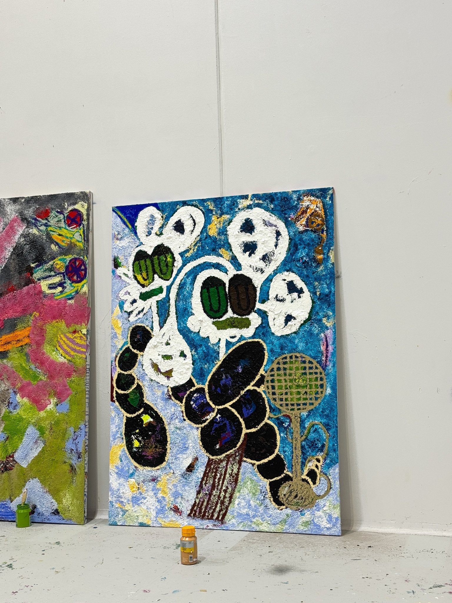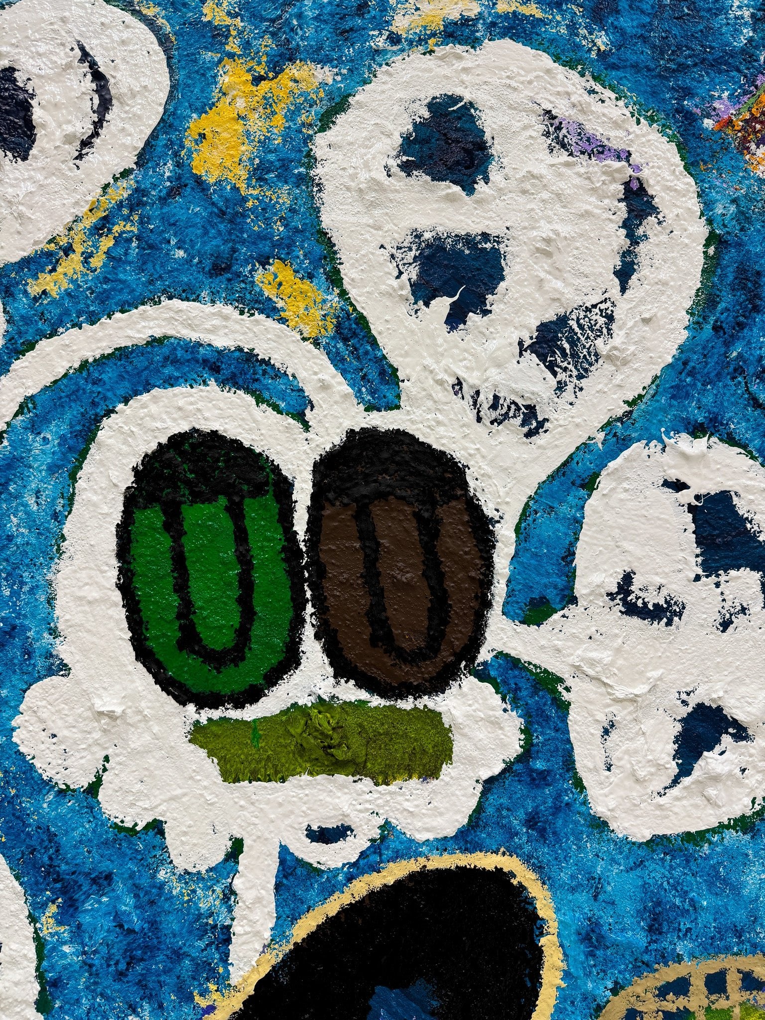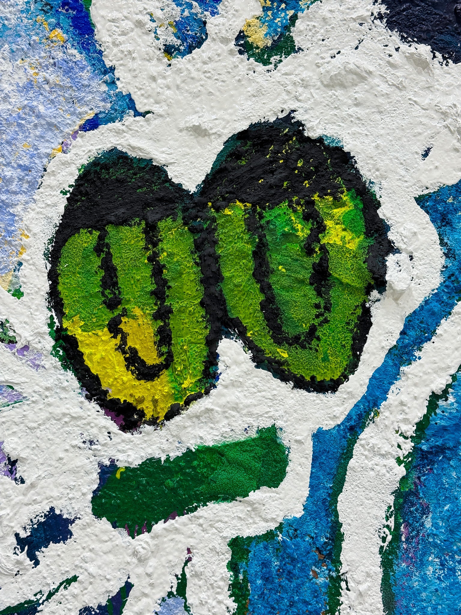 acrylic, oilsticks, spraypaint, sand and paper on canvas
