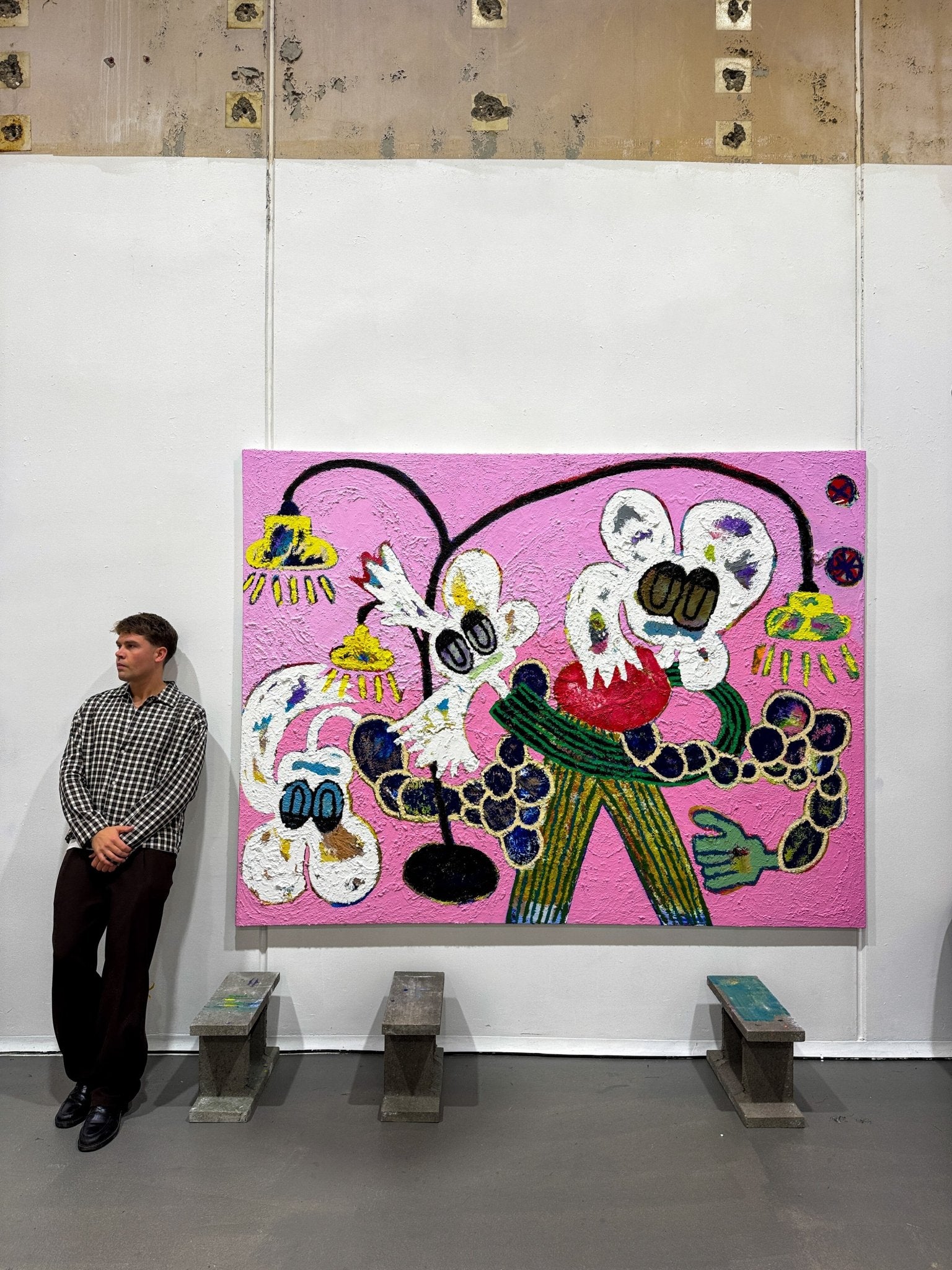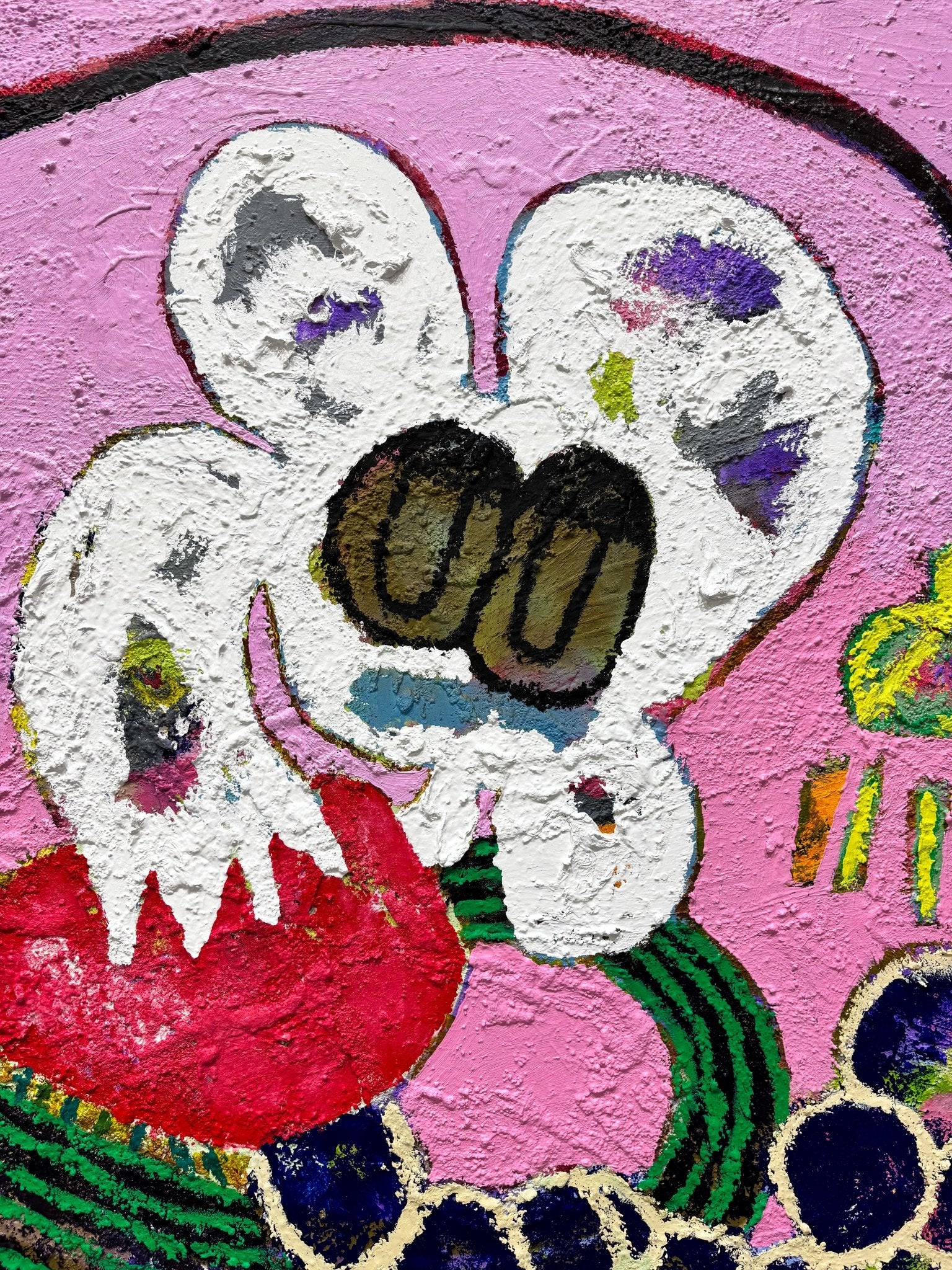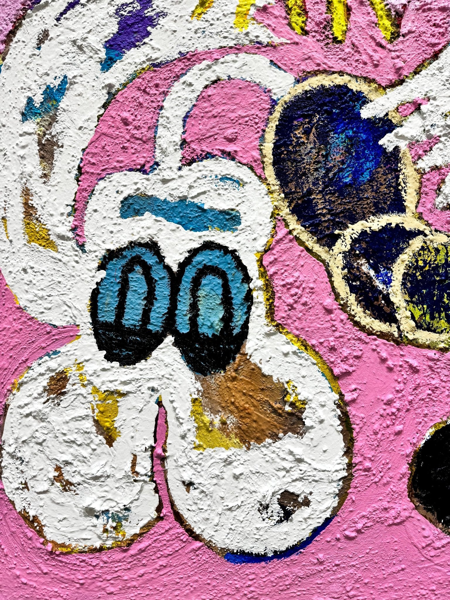 acrylic, oilsticks, spraypaint, sand and paper on canvas