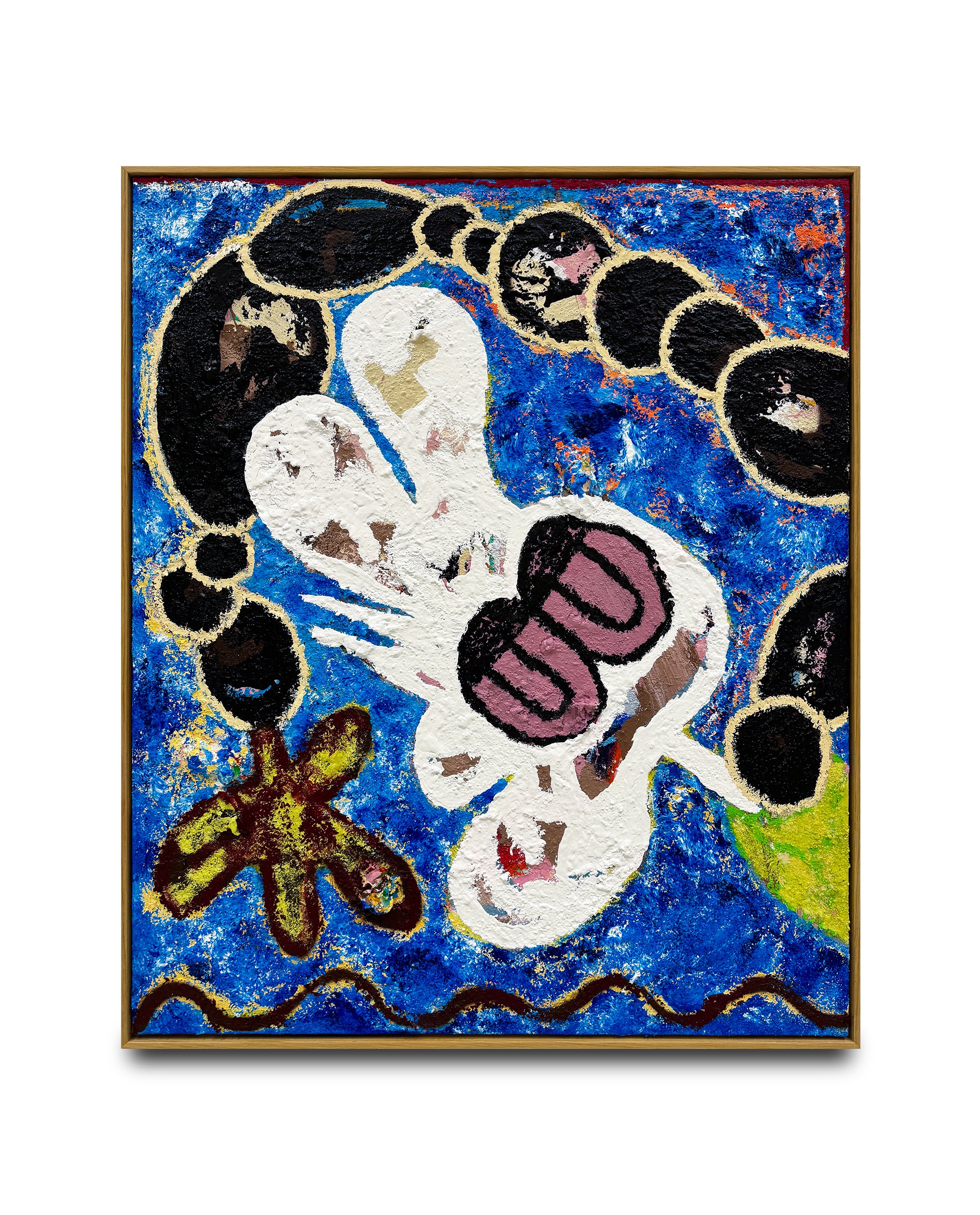acrylic, oilsticks, spraypaint, sand and paper on canvas