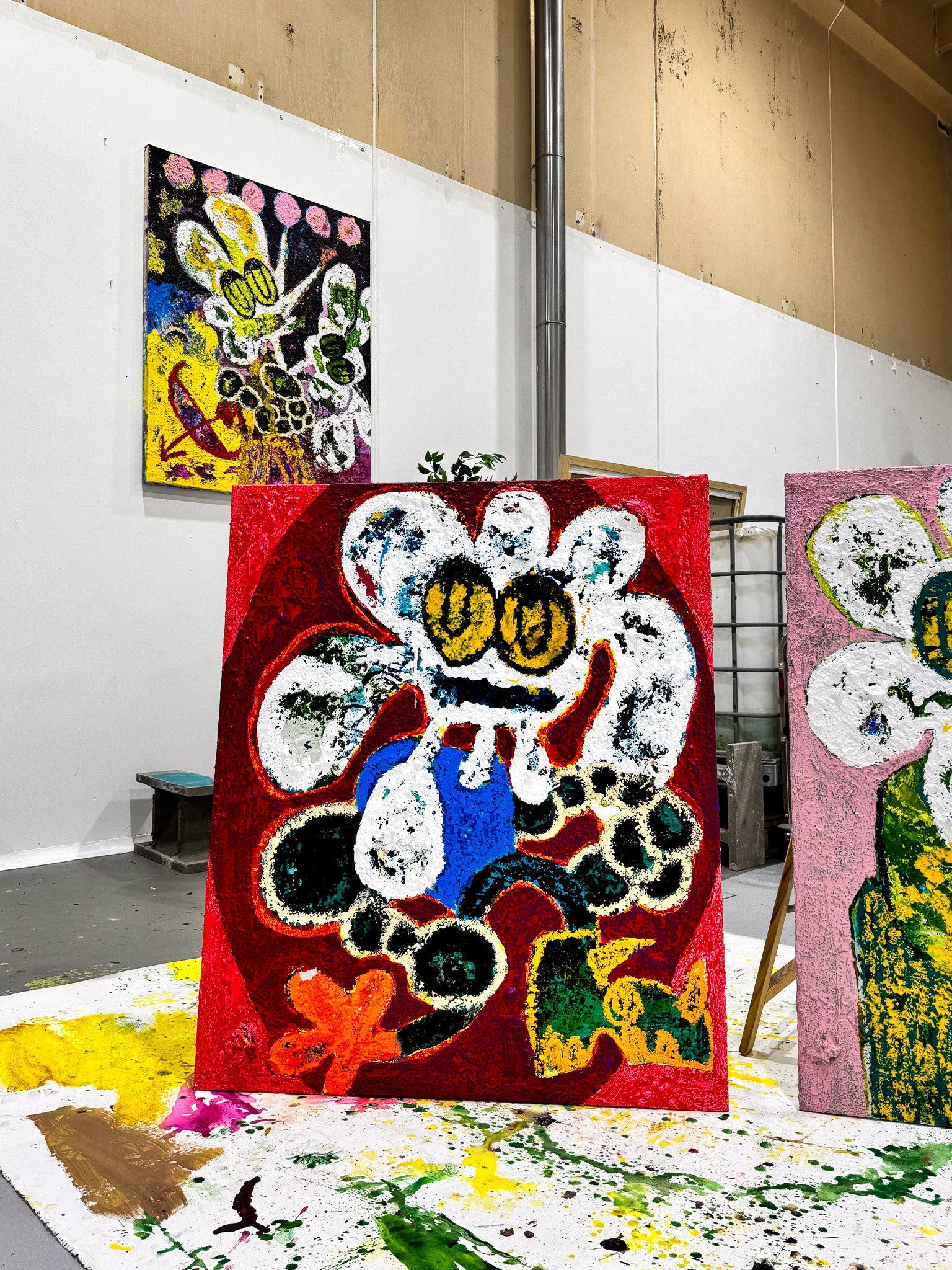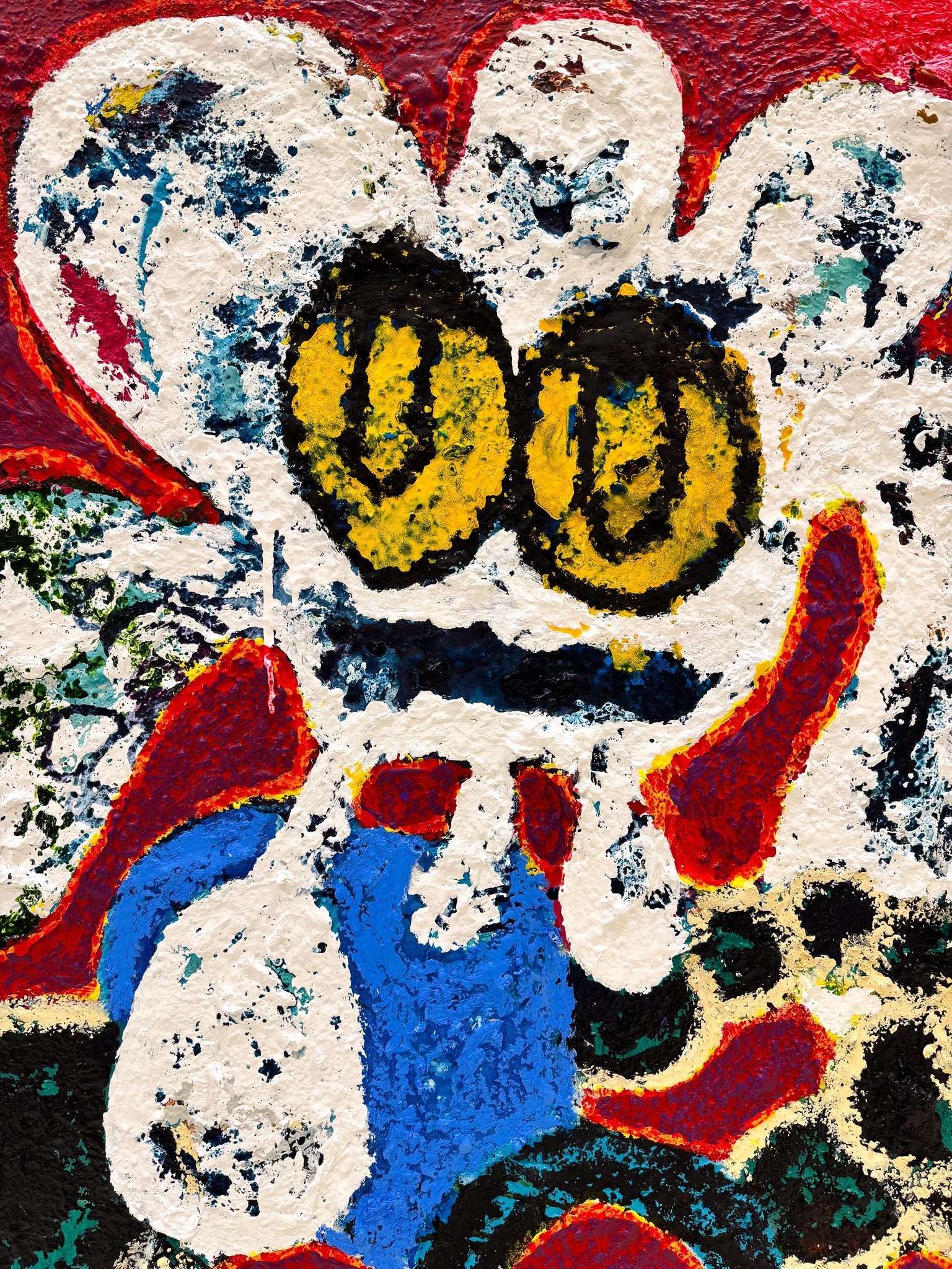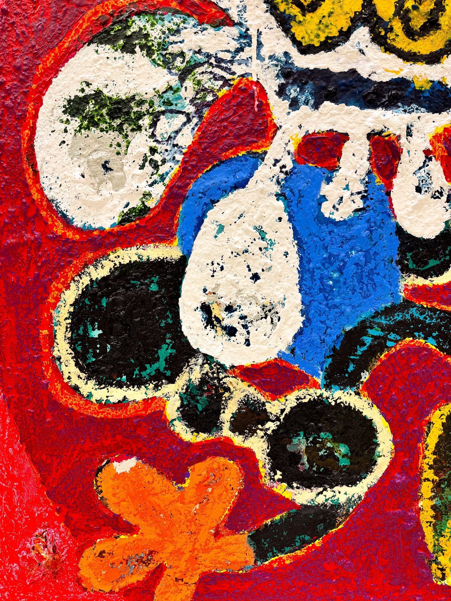 acrylic, oilsticks, spraypaint, sand and paper on canvas