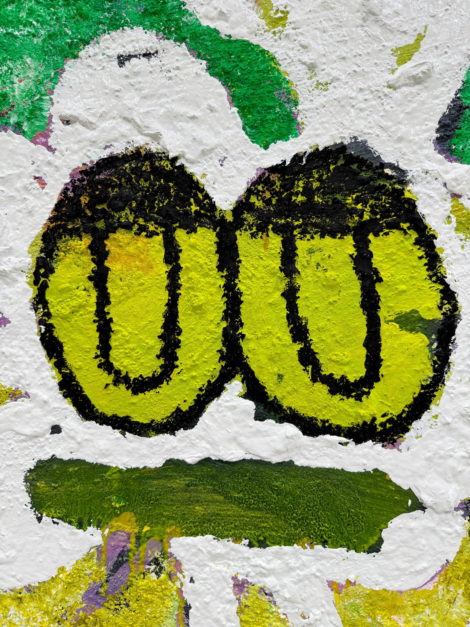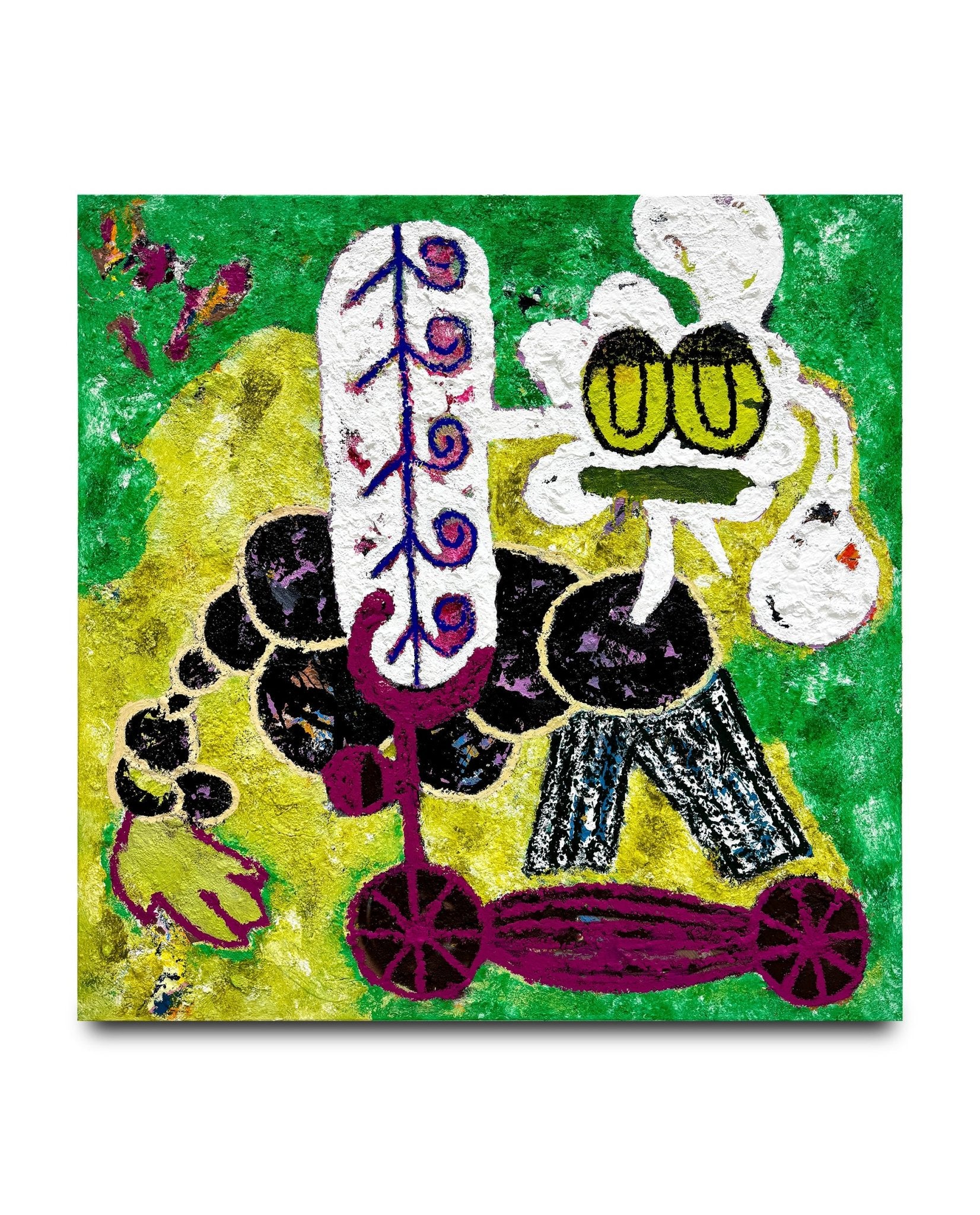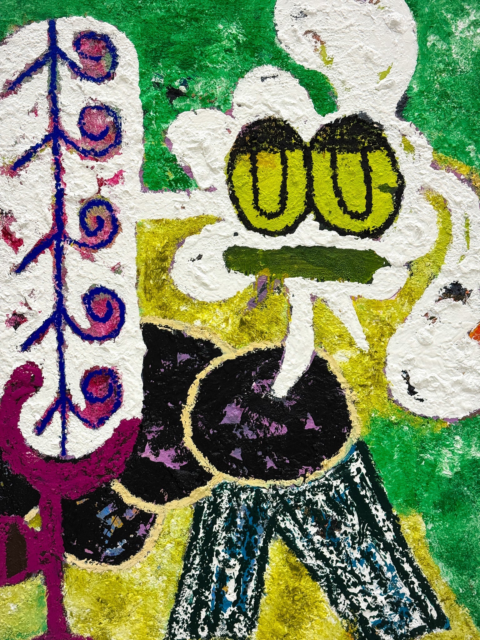 acrylic, oilsticks, spraypaint, sand and paper on canvas