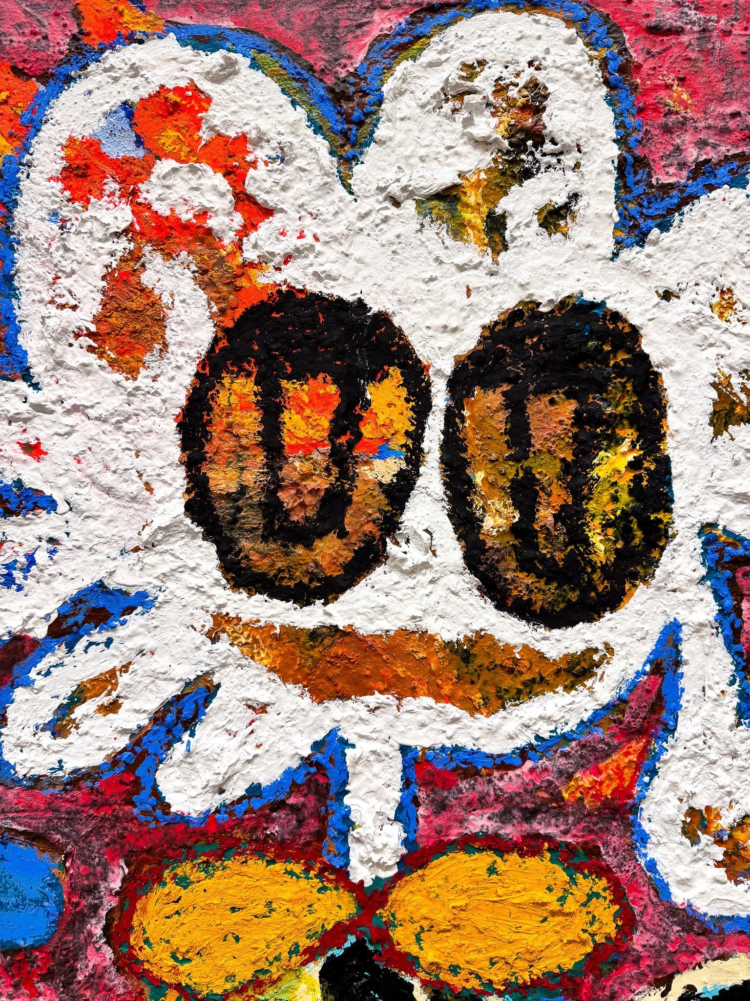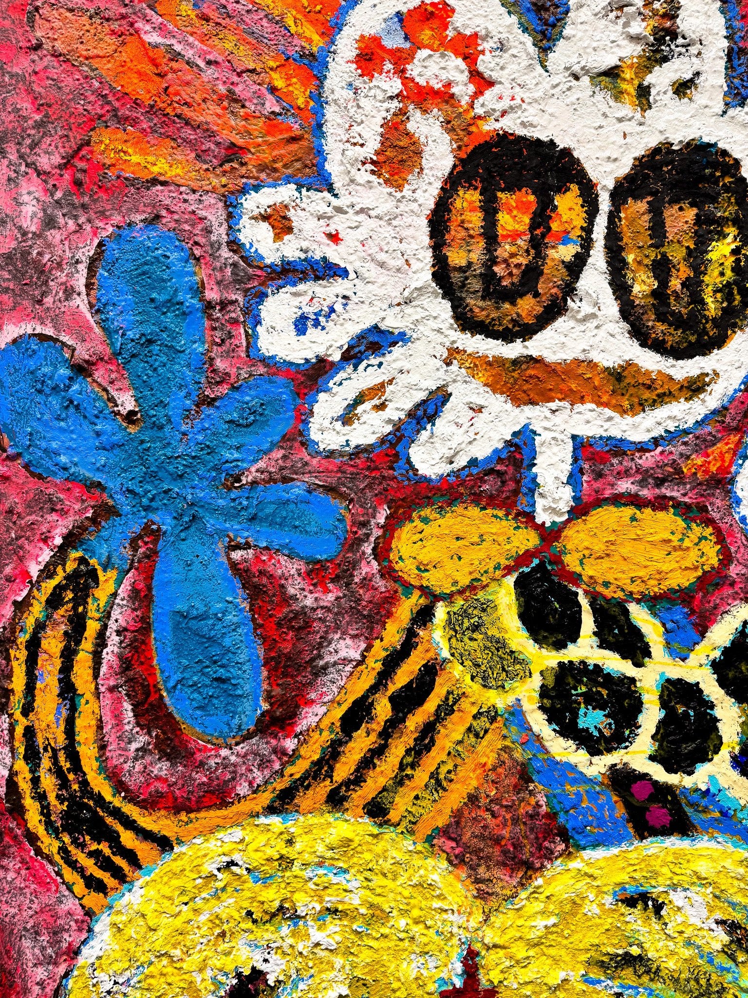acrylic, oilsticks, spraypaint, sand and paper on canvas